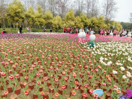 お正月に桂林訾洲公園でチューリップ展が開催