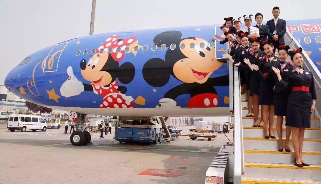 6月16日の上海ディズニーランドの開園を祝い、4月26日に東方航空初のディズニー特別塗装機が出航し、北京首都国際空港京に到着しました。