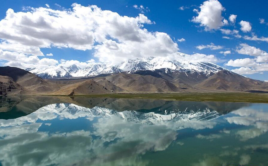 卡拉庫里湖に映っている公格尔九别峰の影です。