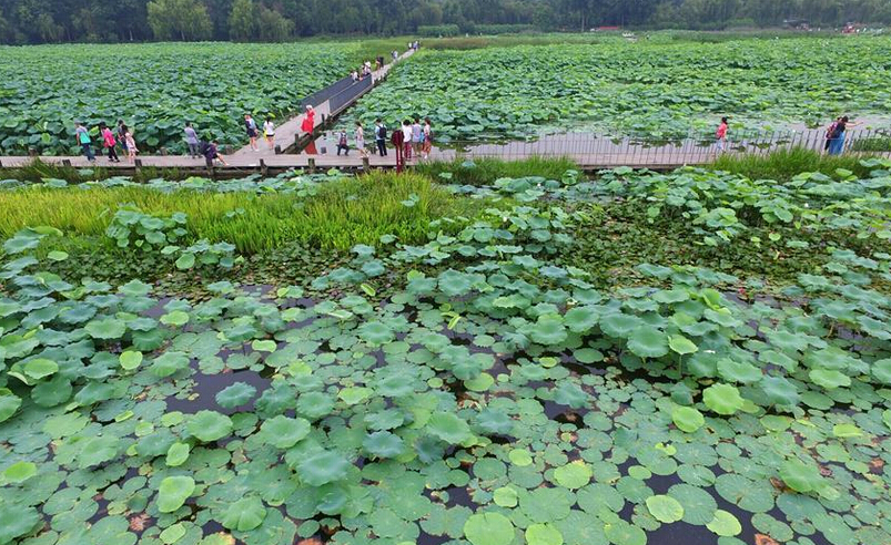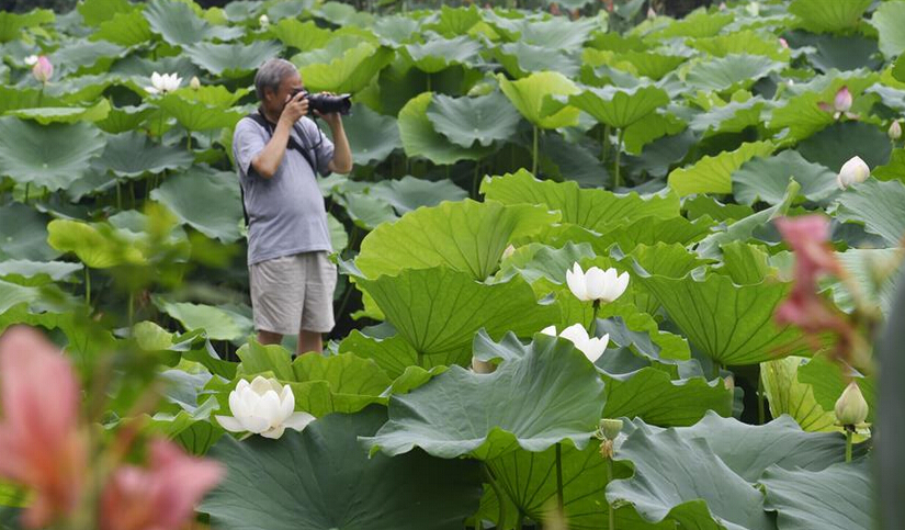 蓮の花がいっぱい生えている湖に、わざわざ蓮の花を見に来る人がたくさんいました。