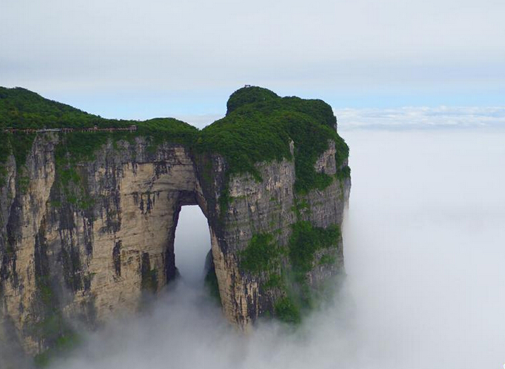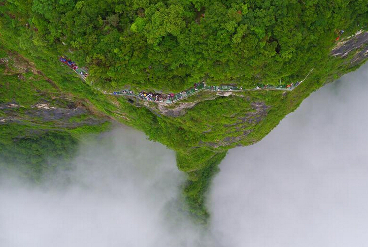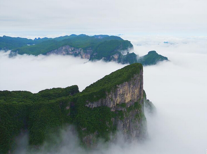 6月29日、雨の後の湖南省張家界天門山国家森林公園は、白い雲に覆われ、幻の山になっており、まるで仙境そのもののようです。