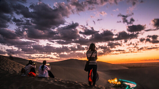 7月中旬、国際観光名城の甘粛省敦煌市はシーズンに入り、毎日何千何万人もの国内外の観光客がこの有名な鳴沙山と月牙泉に集まっています。夜景を見たり、砂漠の風景を楽しんだり、敦煌の文化を感じたり、現地の民族風情を体験したりしています。