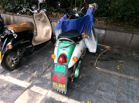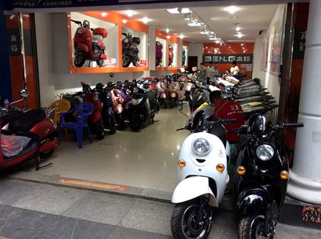 その後、辺りの電動車を回りました。性能はよくわかりませんが、名前は主に三種類がありました。緑源、小刀、立馬などの中国らしい名前があると同時に愛瑪とか比徳文のような意味がさっぱり分からないものもありました。更に名前を見て、合の子の感じがする物もありました。例えば、本鈴はどういう意味ですか,日本の鈴木ですか、それとも本田と鈴木の合弁ですか、よく分かりませんでした。また、台鈴というのもありました。それは多分台湾の鈴木の意味でしょう。更に韓菱と韓鈴という可笑しい名前もありました。それは韓国の三菱と鈴木の意味に違いないです。