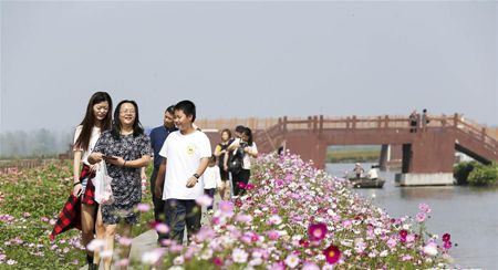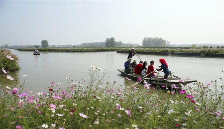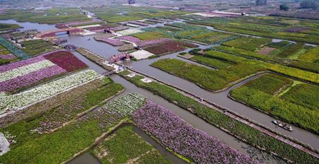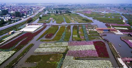 写真は10月5日、江蘇省興化市の千垜景勝地の航空撮影です。秋の千垜景勝地は色とりどりの花が咲き乱れ、美しい花の海のようでした。(新華社より)