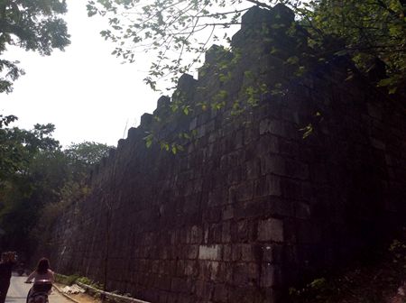 驛前街は桂林の虞山の麓にある漓江沿いの古い町です。朝、甲天下広場から100番バスに10分ぐらい乗って、東鎮路で降りました。繁華な中山路から狭くて、静かなで東鎮路に入り、そのまま歩いていくと古い昔に行けるような妙な気がしました。100mぐらい歩くと、古めかしい城門が見えてきました。それが宋代から残した城門―東鎮門です。昔、桂林のお城は漓江に面して、門がいくつかありましたが、現在は東鎮門しか残りません。この城壁は宋から残されたものですが、櫓は新しいものです。