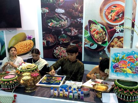 外国につながっているのか、入場は厳しくチエックを受けなければなりませんでした。会場は国内区と国際区との両部分に分けられていました。最後の日なのでしょか、さっきの美食展と比べて、こちらは大分静かでした。タイのカウンターの割合賑やかで、スタッフが熱心にお客さんを接待していました。さすがにタイの人はサービスが良くて、感心しました。