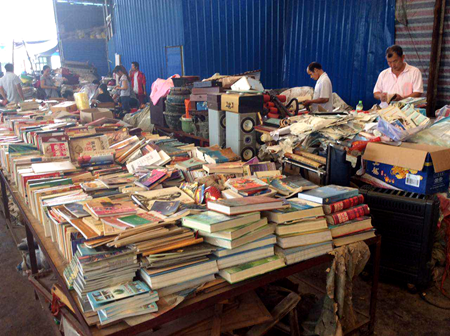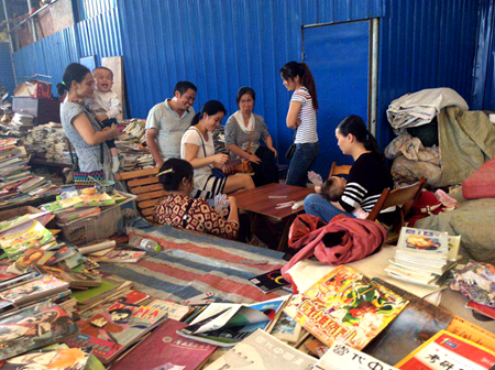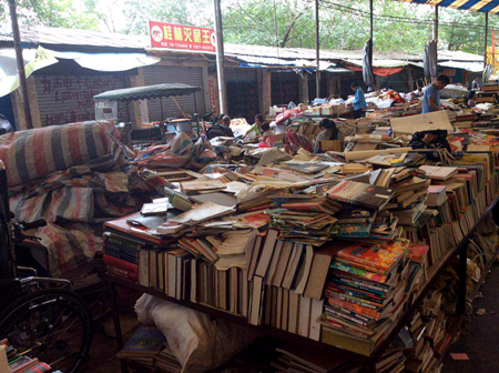 六合旧物市場は桂林最大の古本市場で,七星山の麓の六合路にあります。古本市場に本がたくさんありましたが、お客さんが寂しいほど少なかったです。商売にならない経営者たちはそれぞれ4、5人集まって、「字牌」をやって、時間を潰していました。お金にならない古本は粗末に周辺に捨てられて、お気の毒でした。