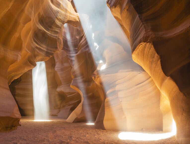 アメリカのアンテロープ・キャニオンは延々とした洞窟トンネルを以て有名です。洞窟に日差しが照りつけ、幻で美しいです。