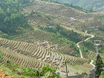 現在、山頂の毛寨に上がるためのリフト作りの工事をしているところです。新しい観光地造りの狙いをして、そのための施設の整備が続いています。現在は観光客がまだ少ないし、入場料もまだいらないです。秋になると見渡す限りの棚田に菊の花が満開していて、どんなに見事な眺めになるでしょう。