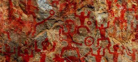 この岩絵の意味は何なのか、壁面にどう描けたのか、今にも分からないですが、一つしか分からないのは、花山岩絵の顔料は赤鉄鉱を使っているということです。赤鉄鉱を混ぜる顔料の耐久性が高く、何千年経っても褪せないという質なので、今でも壁面の画像もはっきり見えます。