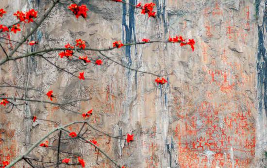毎年春になると、左江の岸に植えている木綿の赤い花が咲いて、丹色の岩絵と飾り合って、美しい花山景色となっています。