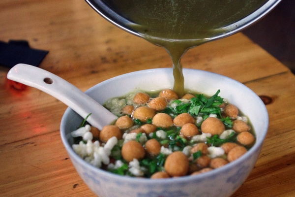 油茶は唐の時代から流行って来たものです。椿の油で茶の葉っぱともち米をとろ火でゆったりと炒めて、水を入れて沸かしてから飲みます。お米なども入っているので油茶を定番の朝食としてを現地の人が飲んでいます。