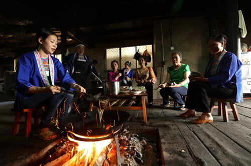 侗年は侗族にとって一年中最も大事な行事で、先祖を祈念して祭って、年末の収穫を祝う節句です。村によって節句の日も違いますが、皆は朝早く起きて、家族一番年長の人は先祖の写真の前にお供えものを並べたりお線香を上げたり、「侗族吉利詞(縁起がいい言葉)」を朗読したりして爆竹を鳴らします。