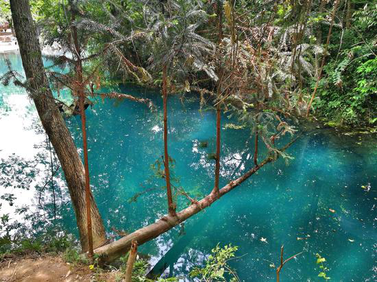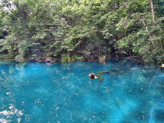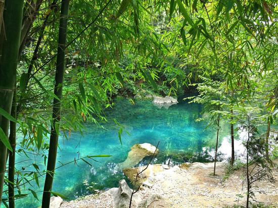 奥に行けば行くほど、青に澄んでいる川水はさらに清くなります。水の色もサファイアのような明るい紺色に変わります。