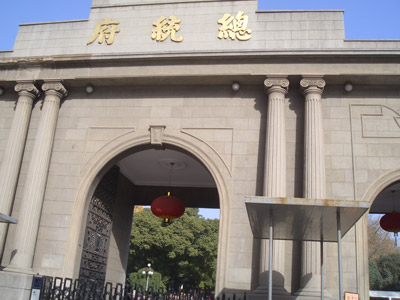 孫文、国民政府の総統府、太平天国天王府跡です。1853年に洪秀全が南京を天京と改称し、天王府を置きました。1912年に孫文が臨時大総統に就任したときの総統府、1927年に国民政府の総統府が置かれています。孫中山の執務室、蒋介石、李宗仁の執務室、文官長執務室、政務局、図書館、防空壕などがあります。見学するところは結構ありますので、全部見て回るには約2時間かかります。私が行った頃はまだそんな遅くないので、人のいない入口の写真を撮れました。