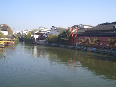 夫子廟の老街からずっと歩いて行くと南京の母なる河「秦淮河」に着きます。ここには船乗り場があり、遊覧船に乗って秦淮河を観光することができます。