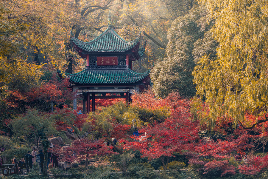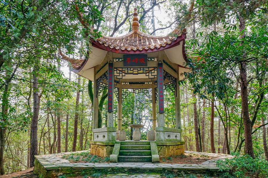 岳麓山は湘江の西岸に広がる景勝エリア。中国五岳のひとつ、衡山の山麓という意味で岳麓と呼ばれる。最高地点は300.8M。最大の特徴は、儒教、道教、仏教が共存していること。麓には儒教関連の岳麓書院(北宋期創建)、山腹には仏教寺院である麓山寺(西晋期創建)、山頂には道教寺院の曇麓宮(明代創建)がある。また、中国四大名亭のひとつに挙げられる愛晩亭も有名だ。