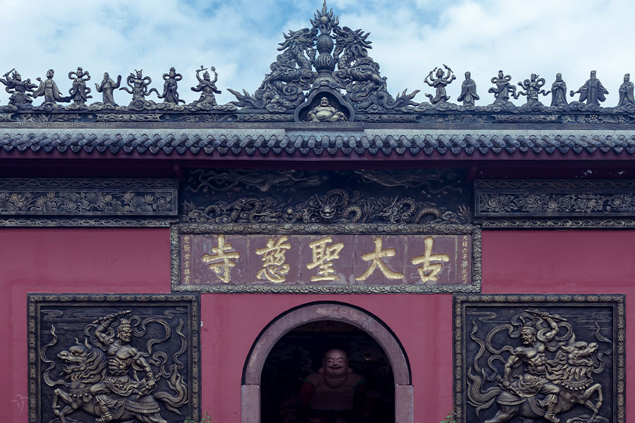 古大聖慈寺は成都市東風路に位置し、敷地面積は1.7万㎡を誇り、「震旦一の叢林」「成都一の寺」と称されています。1981年に成都市の重要文化財に指定され、1983年には成都市博物館として開放されました。数多くの著名人によって造られた壁画でその名が広く知られ、古代四川省西部において指折りのお寺として脚光を浴びていました。言い伝えによると成都という土地は、内陸の海に浮かぶ一枚の陸地にあり、町の沈没や地盤移動、水害から成都を護るために、人々は海に繋がる「海眼」と「風水宝地(地相の良い場所)」に大聖慈寺を建造し、成都の安寧と繁栄を永久に保つことができると信じられてきました。これに基づき西暦700...