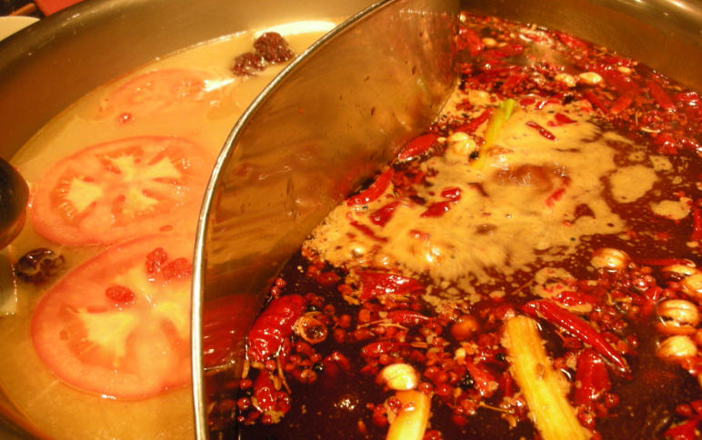 大々的に分けると、火鍋スープはあっさりしたパイタンスープと激辛のマーラースープの2種類があります。地元にいなくても地元の味が味わえ、観光客だけではなく故郷を立つ時に地元の人も必ず持っていく物です。食べ方も簡単で、スープをお湯の中に入れ、沸いてから野菜や肉を入れて食べられます。
