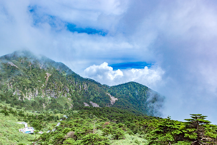蒼山は「点蒼山」とも言われ、雲天の下に広がる森林のくすんだ色から名づけられました。蒼山は洱海西岸にそびえ立ち、南北約42km、東西約25km、南北を横断する雲嶺山脈の南端の主峰です。蒼山では雪、雲、泉、石が四絶と称され、蒼山を構成する4つの重要なポイントとなっています。蒼山は海抜3000m級の峰が19も連なり、最高峰である馬竜峰は標高4122mを誇り、万年雪に覆われ光り輝く雄大な姿で知られています。蒼山に積もる美しい雪は洱海の月とともに大理を代表する絶景に数えられ、一年中雲がかかる高原気候なので刻々とその姿を変化させる雲は蒼山の神秘的な世界を感じさせます。また峰と峰の間から18本の渓流が東の洱海に流れ込み、澄んで豊かな水が石の間を年中流れ、ところどころで数メータ―の滝を作っています。大理は大理石の産地としても有名で、もともと「蒼山石」と呼ばれ蒼山から切り出されました。このことから大理石は蒼山の魂だと言われます。さらに、蒼山は年中植物に覆われ、高山樅、ハイマツ、ツバキ、ホトトギスなど種類が豊富で亜熱帯植物から寒帯植物まで見られます。