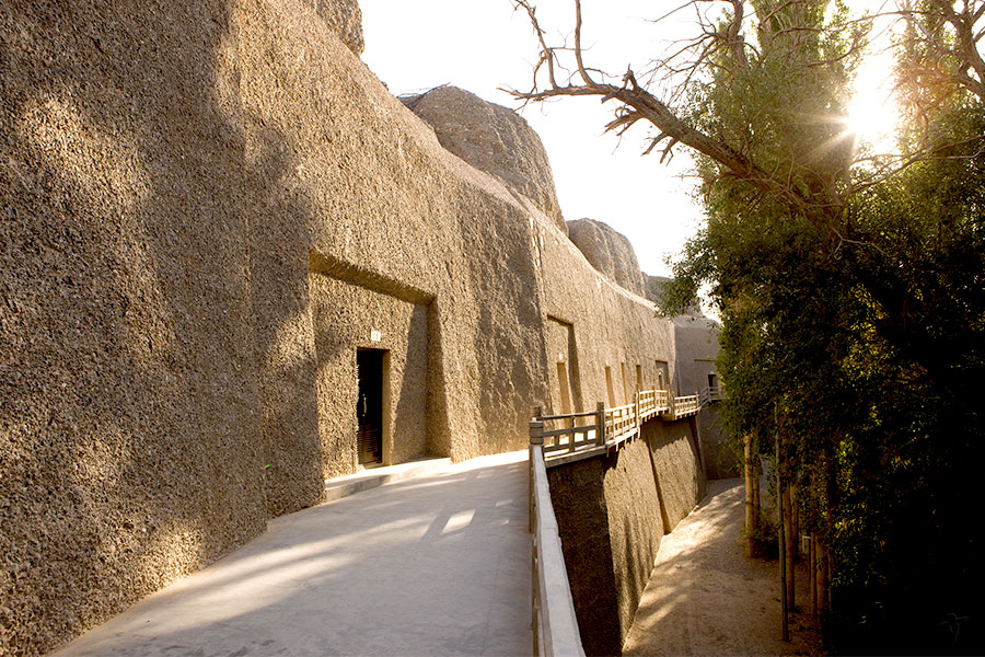 1972年、街から北東へ20kmの砂漠で魏晋時代の墓群が発見。2千余りの墓の内13墓が発掘され、8つの墓には壁画が描かれていた。それらは「地下の百科全書」といえるほど、当時の経済、軍事、生活を描き出している。
