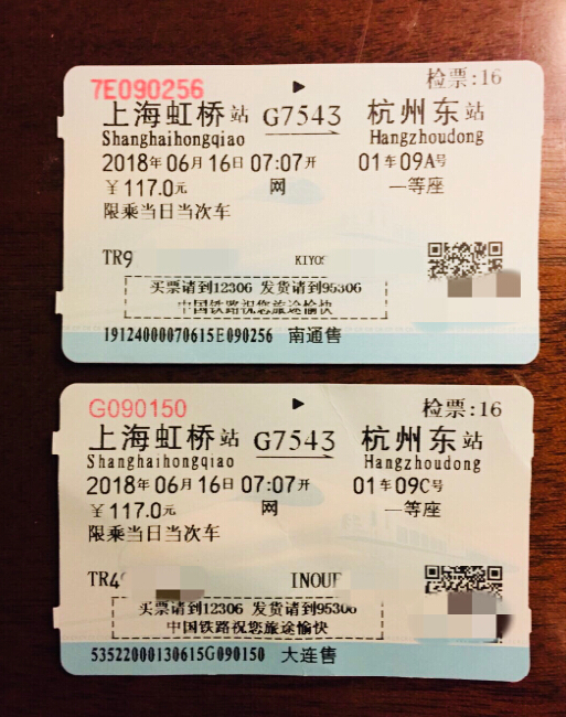 さて、上海~杭州間の列車チケットですが、写真を送付しますので確認して下さい。(添付参照)