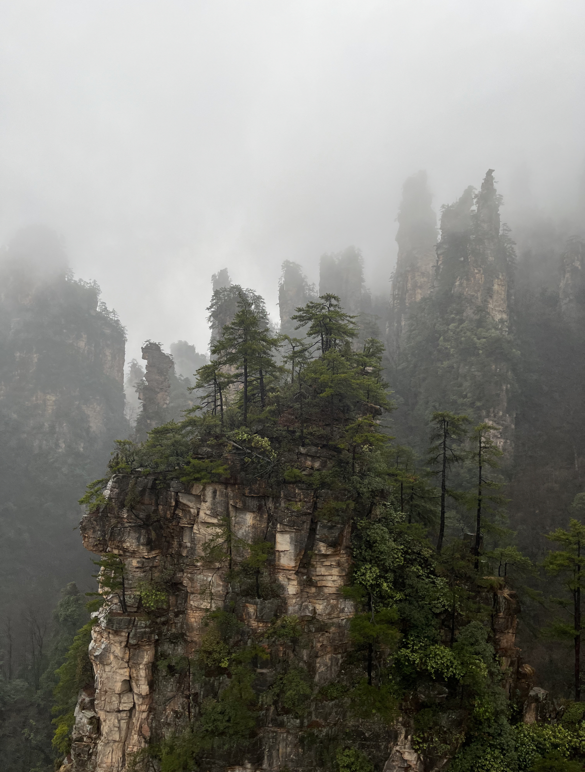 武陵源は曇りでしたが、下からの景色は問題なし、上からの景色は霧が晴れる瞬間が神秘的でした。