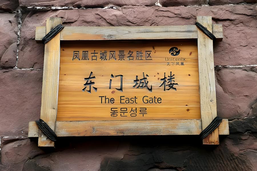 鳳凰古城の東部に位置しており、沱江は目の前を流れていきます。昔は゛升恒門゛と称されており、清朝の1715年に建てられていました。城門の上部は煉瓦で、下部は赤い岩石で構築されています。城門の上には高さが11mの楼閣が有り、ゲードには銃を撃つ用の穴は九個あります。 沱江の近所にあるハイグランドなので、こちらからは鳳凰古城と沱江風景を俯瞰でき、非常に素晴らしい体験と言われています。