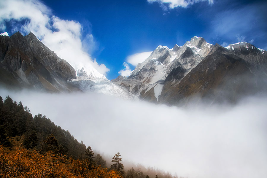 四川省甘孜チベット族自治州南部、横断山脈の中段、青蔵高原の東に位置し、「最後のシャングリラ」「地球で最後の極楽浄土」と讃えられ、中国国内の自然保護区に指定されています。亜丁はチベットの言葉で「太陽に向かう処」すなわち聖地とされ、海抜2990m(貢嘎河口)から6032m(仙乃日峰)に面積1334?の広大な景観が広がっています。また中国で最も無開発な高山自然生態システムが残っており、シャングリラ地区の景勝地の代表として世界で最も美しい高山峡谷景観と称賛されています。そして亜丁景勝地には高山動物と森林動物を中心として野生の動物が200種以上生息しており、南方系種としてレッサーパンダやジャコウジ...