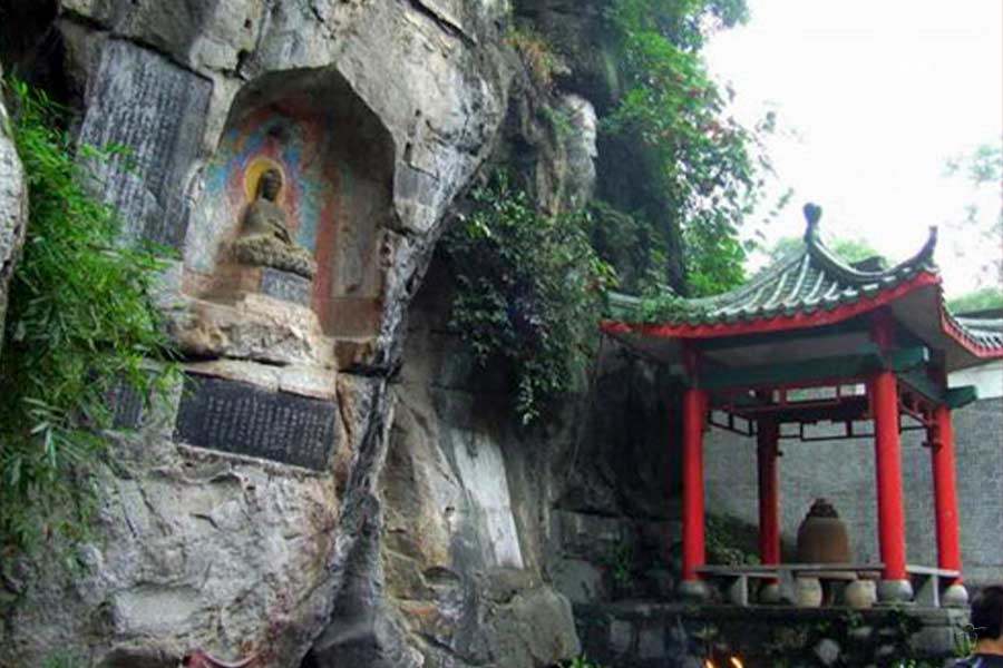 洞窟のドームが川面に映ると美しい満月のようにみえることから、水月洞と呼ばれています。宋代の薊北処士の詩「水底に明月有り、水上に明月浮かぶ、水流れるも月去らず、月去るも水なお流れる」は水月洞の景観を描写したものです。辺り一帯が夕日で染まるころから、満月が川面を照らすころにかけて、象鼻山がひときわ美しく映えます。洞窟の壁には南宋時代の石刻が数多く残されています。