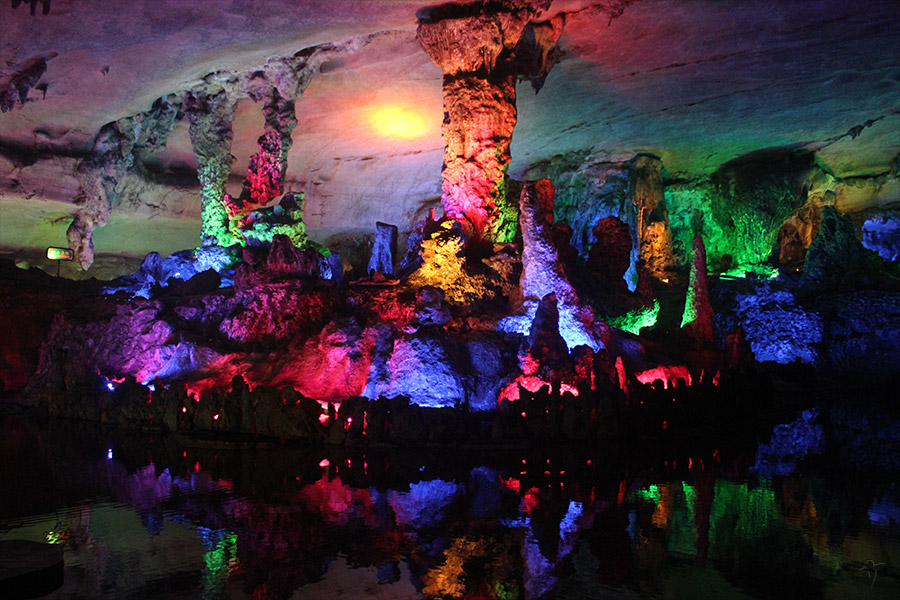 七星岩は公園の中央に座る普陀山の中を貫く、長さ814mの鍾乳洞です。約30分で巡るコースの中は、きらびやかにライトアップされています。自然の力が鍾乳石で創り上げた35個所の観光スポットがあり、不思議な世界が体験できます。