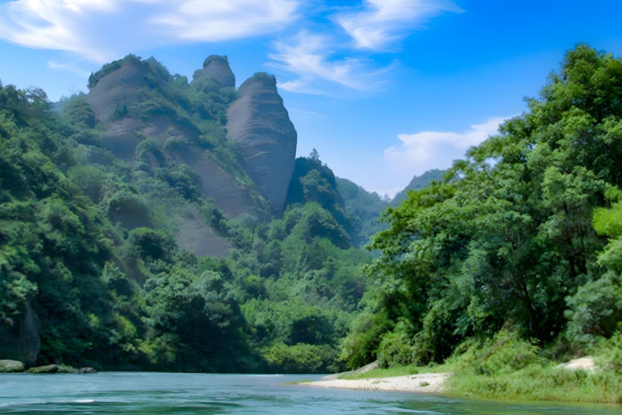 両岸の森林と丹霞地形の山々を楽しんでいただきます。途中にあるヤオ族の村を上陸観光