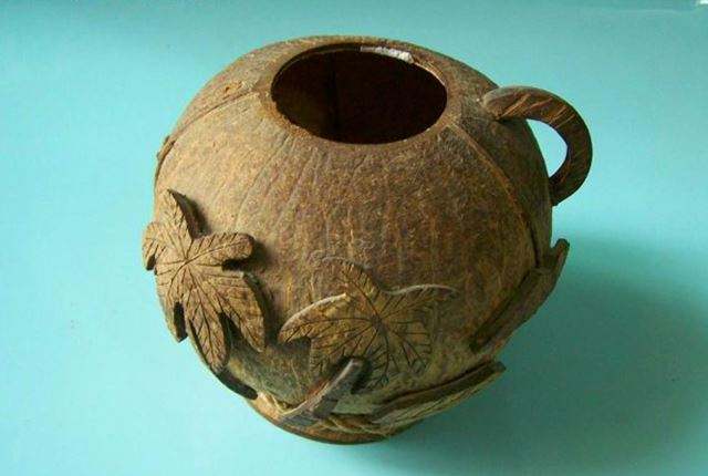 ココナッツの殻、木などを芸術的に加工し、300年の歴史があります。ココナッツの殻が天然の形で、殻と貝を組み合わせ、デザインに合わせて工芸品を作ります。ココナッツボウル、茶箱、ラベル、灰皿、花瓶、にこ、コラージュ工芸絵などがあります。