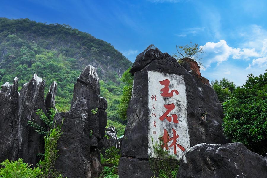 賀州「玉石林」風景区は漢玉石柱と石筍から「玉石林」をなり、一億年以上前のジュラシック時代に形成されました。こちらには奇石が重なり合っており、さまざまな形をしています。 「千年ラクダ」、「空中廊下」、「一直線の天」などの奇特な自然景観があります。石峰の多くは灰白色で、又玉のような真っ白な「雪原玉柱」の景観もあります。下山の時、ソリーも体験することができます。 玉石林の一番良い観光時間は朝です。なぜというと、霧が出てくる場合が高いで、奇石の峰の林はこの雲霧の中で見え隠れし、まるで仙境のようです。