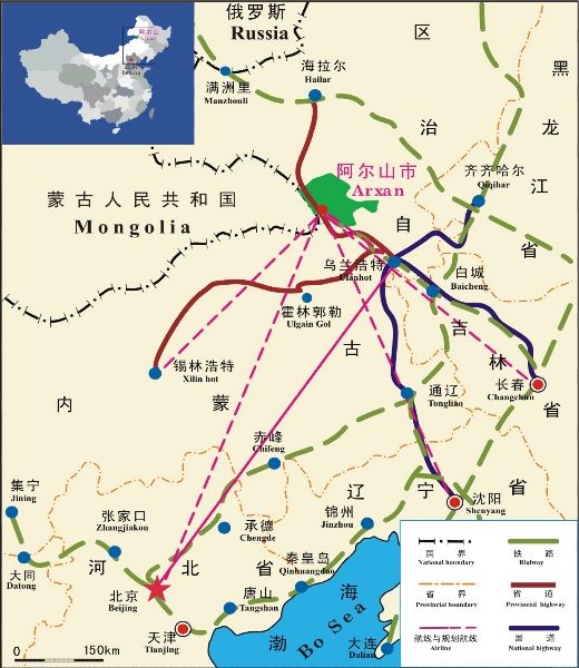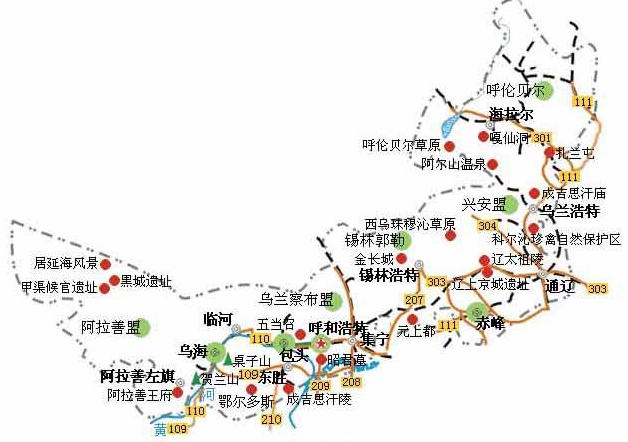 内モンゴル観光スポット地図