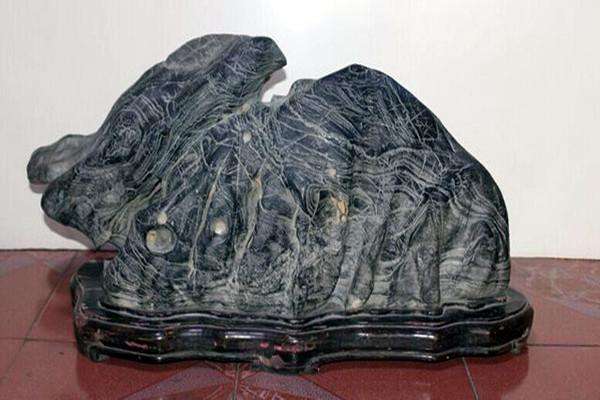 「中国四大名石」のひとつで、構造が緊密で細かい石灰岩が風化作用を経てできたもので、その鉱物成分は主に方解石です。色は漆のように黒く光り、石質は滑らかで潤いがあり、叩くといい音がします。主に家の展示品と庭園の飾り物に使われ、清の乾隆帝は霊璧石を「天下第一石」と賜ってあげました。