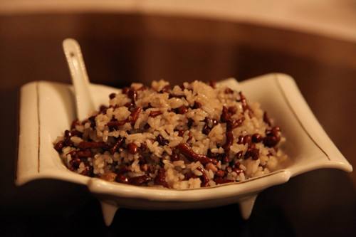 チベット族は縁起の食べ物と見なされています。祝祭日の時このような物を食べなければなりません。まず人参フルーツを煮た後、ご飯の上で煮た人蔘果と砂糖をふりかけ、熱したショートニングもかけて完成します。