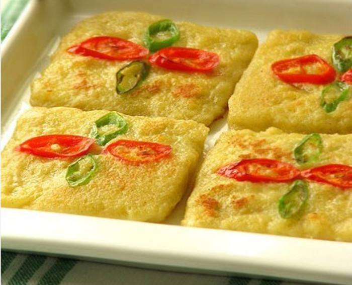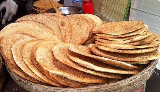 主な材料は青稞麺で、蒸し焼くことによってできあげます。外観は黄金色に見えて、甘いのです。