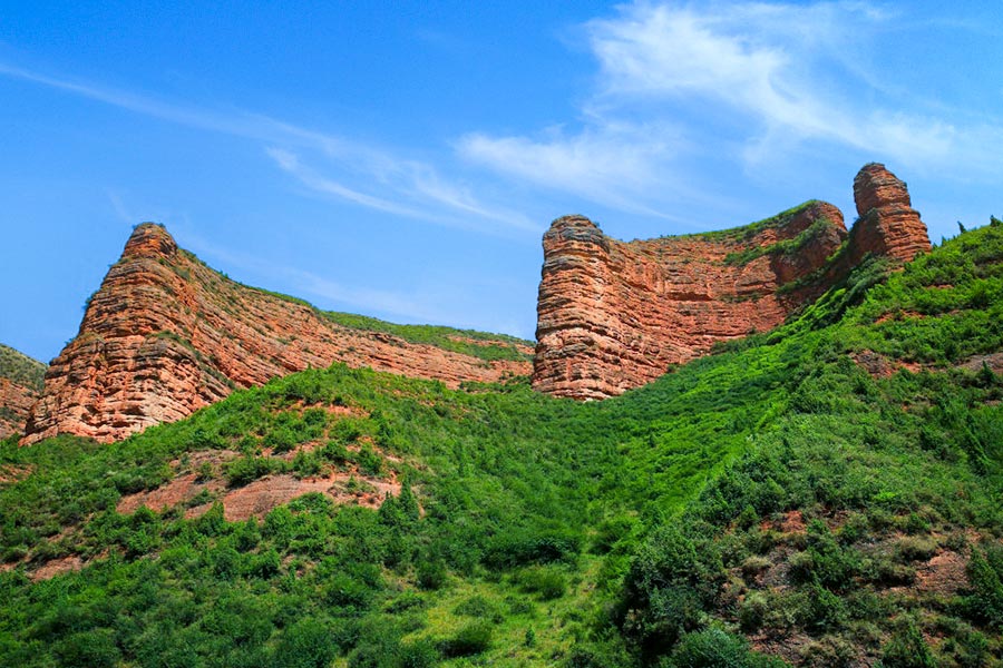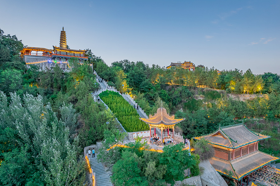 蘭州市から160kmの所に位置する、手付かずの自然が残る景勝の地。ハスの花の形をした蓮山や奇妙な形をした断崖絶壁、チベット人の聖なる湖、冶海湖などを眺めながら、馬や徒歩で散策できる。