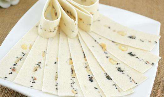 米の粉に砂糖とクルミを混ぜて固めたものを薄片状に切った茶菓子で、繊細で甘く、口に入るととろけます。
