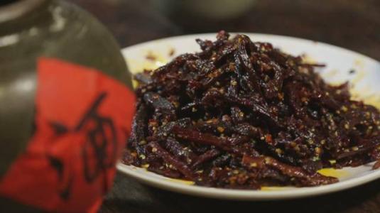 すっぱい豚肉は色が鮮やかで、皮は黄色を呈し、脂身は乳白色を呈し、赤身は暗赤色を呈します。肉には米やサンショウの粒が数個入っていて、できた皮は脆くて、肉は新鮮で、酸っぱさは適中、香りはあふれます。口にするとあっさりした感じです。食べる時に唐辛子粉をこぼして、味は更に良いのです。