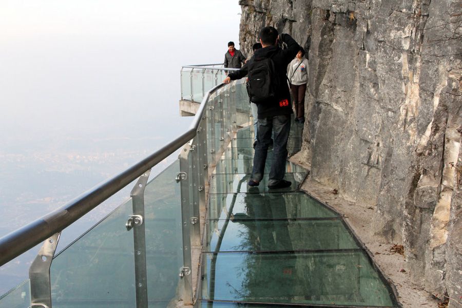 先日、張家界天門山国家森林公園に新築されるガラス橋が観光客に正式的に開放している。ガラス桟道は天門山の頂上西線に建てられ、長さが60メートルで、一番高いところの海抜は1430メートルだということである。