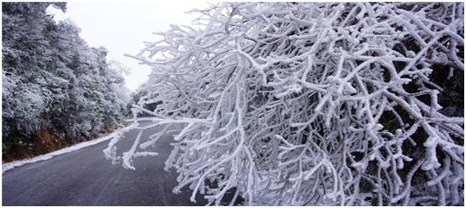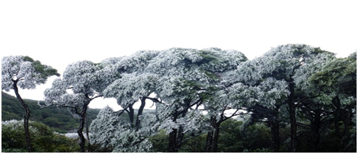 広西桂林:猫儿山にて今年初めての樹氷が見事なデビュー