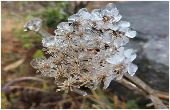 11月23日早朝、広西チワン族自治区桂林北部の一部の山岳地帯の気温が0℃を下回り、猫儿山の気温がマイナス4℃に下がった。今年初めての樹氷が観測された。