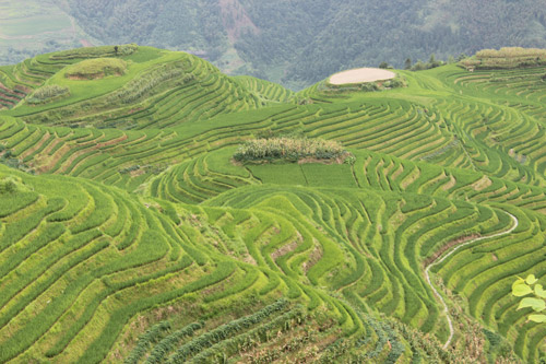 調べによると、「美麗中国」の普通切手の推薦募集は4ヶ月もかかりました。推薦は全て各省区市のシンポル的な人文景観と自然風景です。各省区市が推薦してから最終的に専門家によって六ヶ所の景観が選ばれました。桂林龍勝棚田風景は独特の自然風景で福建省の霞浦県の砂浜、湖南省張家界天子山、海南島三沙七連嶼、遼寧省の紅海灘(赤い砂浜)、江蘇省の興化?田と一緒に各級の審査を通し、無事《美麗中国》普通切手(第一組)に登場しました。
