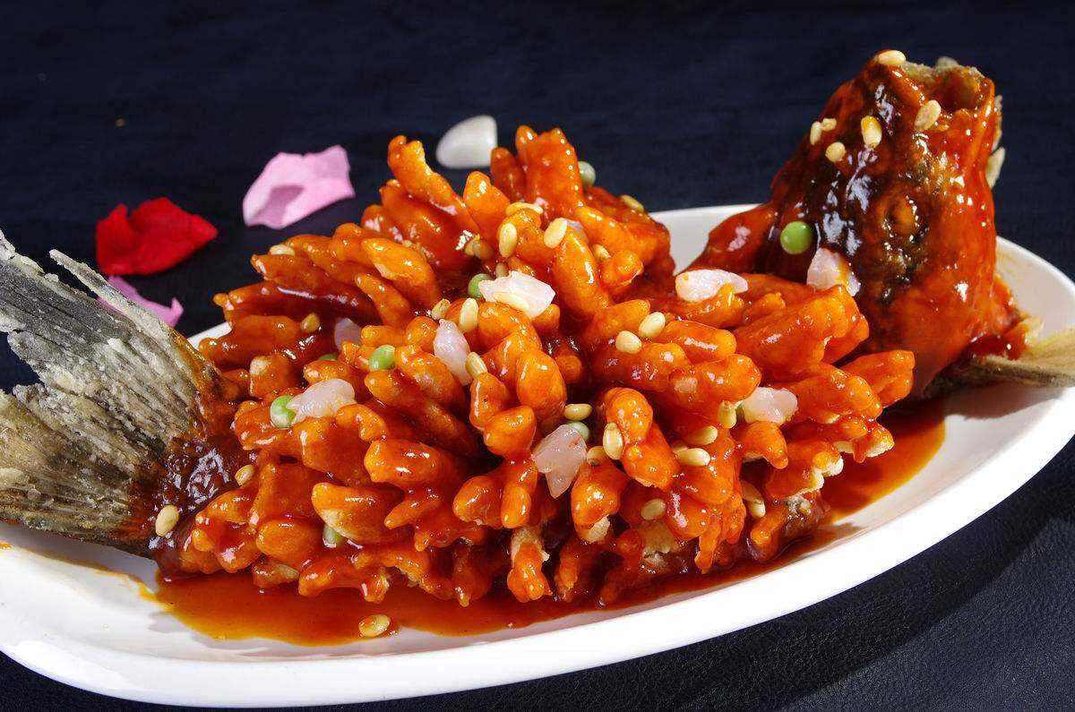 主にけつぎょを原料とし、これも松鶴楼の伝統的な名物料理で、江南地方各地の宴会に欠かせない料理でもあります。乾隆帝が江南に下った時、蘇州に「リス鯉」があったということです。乾隆帝が味わった後、「リスけつぎょ」に発展しました。揚げたリスのしっぽのようなケツギョを食卓に乗せると、秘伝のタレをかけて、「リス桂魚」はジリジリと鳴いて、本物のリスのようで、実に見事でおいしい伝統料理です。