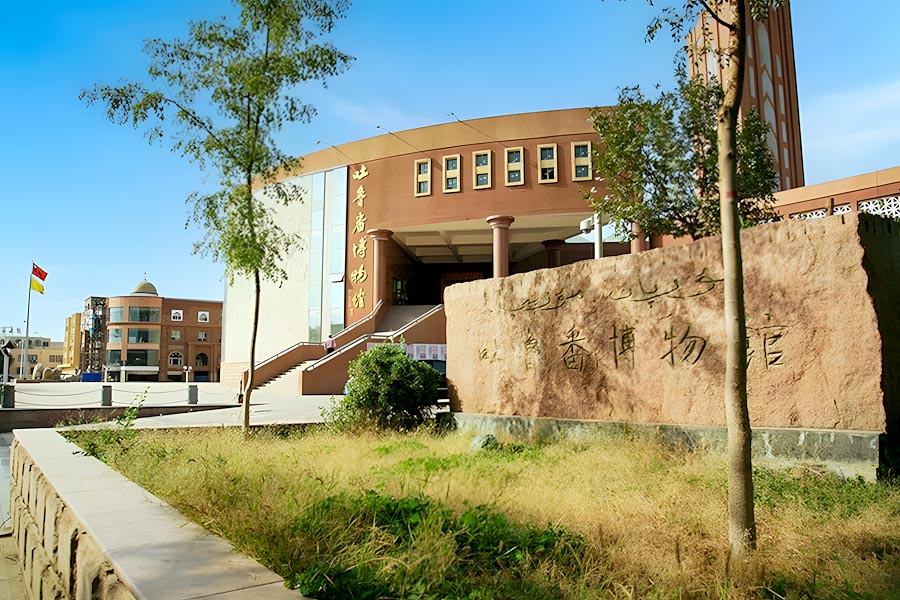トルファン博物館はトルファン市の高昌西路に在り、1989年に落成し、敷地面積が9ムー(1ムーは666平方メートルになる)に及びます。建築面積が2000平方メートルに達する博物館はメインパビリオンと「巨犀陳列館」から構成されています。博物館は設備が完備され、近代的な安全保障施設も揃われています。また大型の透明式の密封した展示用コーナーも導入されています。これらの優れた設備に相応しいレベルの高い館内説明に勤めるスタッフも育成されています。現在、館内に所蔵するものが2387件にも上っています。国の一級とされた文物が135点あり、二級の文物が260点、三級の文物が640点あると言われています。...