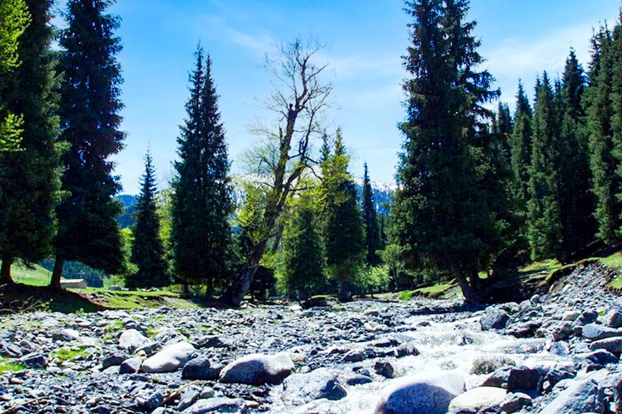 すなわち天山山脈の東の部分であり、天山山脈の主体部分でもあります。世界7大山系の一つで、温帯干ばつ地域における最大の山脈チェーンとして、東西方向の独立山脈でもあります。新疆天山は独特な自然を持って、壮観な雪山と氷河が覆う峰、汚染されていない森林と草地、澄んだ川と湖、峡谷を含みます。これらの景観は広大な砂漠と鮮明なコントラストして、鮮明な視覚を造り出しました。前世紀以来、この地域はずっと保護され、生物と生態の研究地となっています。2013年6月21日、世界遺産に登録されました。