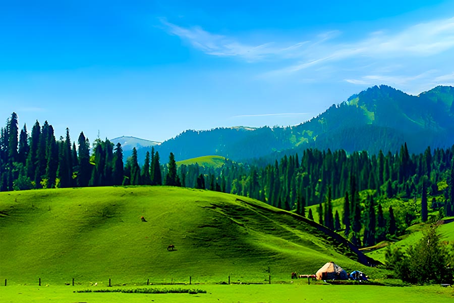 ウルムチ市の南郊外にある有名な避暑地。そこに自然の地形を生かした牧場が多数ある。そのうち、白楊溝一帯にはカザフ族の牧場がある。広い牧場と落差40メートルの滝がある。競馬、叨羊(羊うばい)など民族伝統スポーツや草原景色が楽しめる。 今はすっかり観光地化したが、元々はカザフ族の放牧地で、緑のじゅうたんを敷いたように美しい草原の中をパオや家畜が点在していた。