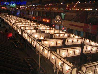 湟源排灯は青海省湟源県城関鎮に由来し、清の時代嘉慶、道光年間まで遡ることができます。当時の湟源県城には中国本土の商人が密集し、湟源城内の商店街は客を誘うために次々と看板を作っていました。その後、各店舗の看板はますます精巧で華美に作られ、台座付きの様々な形の看板ランプを組合せ、街を横断する大型のランプは看板ランプをベースにして作られました。